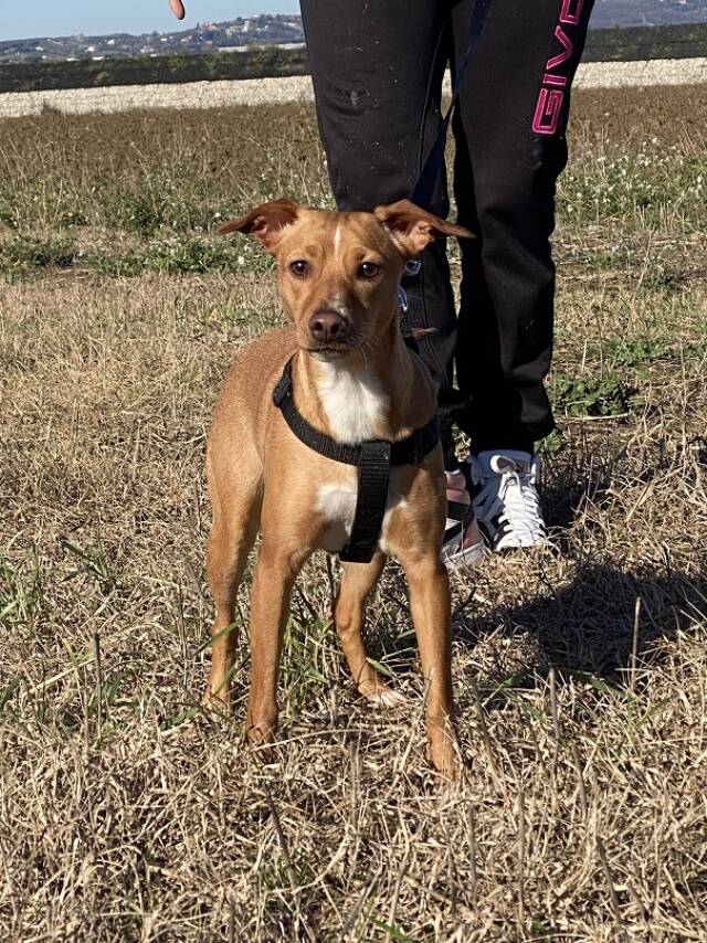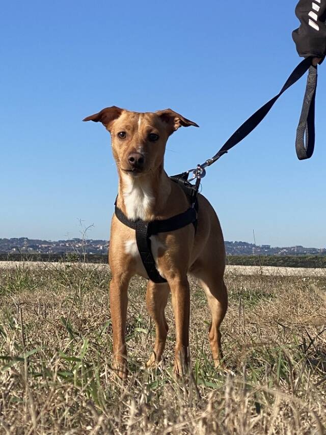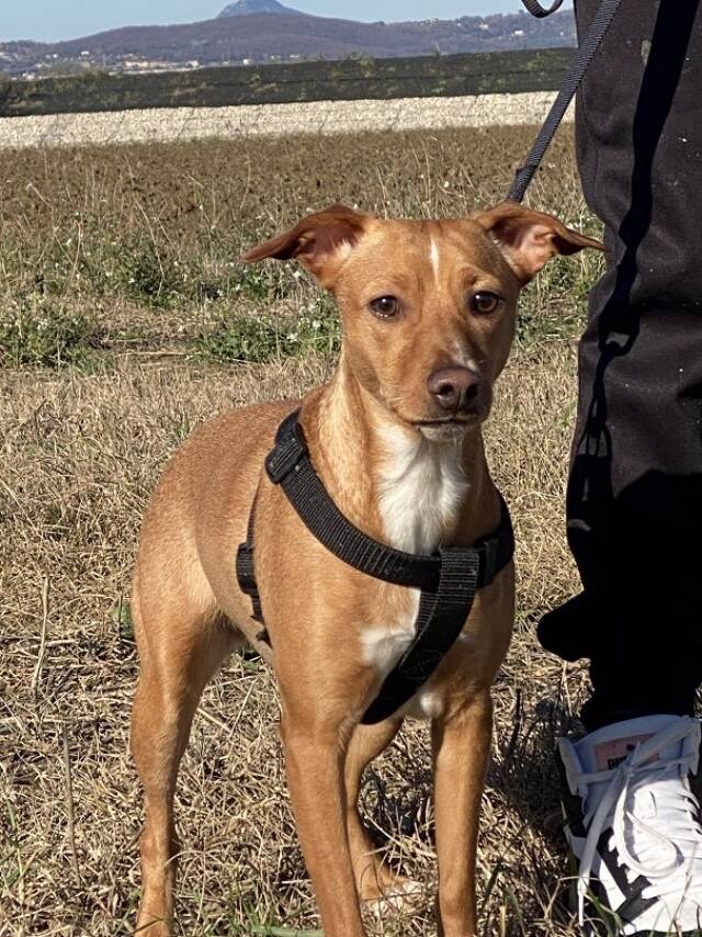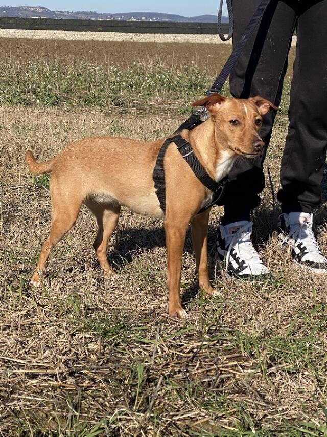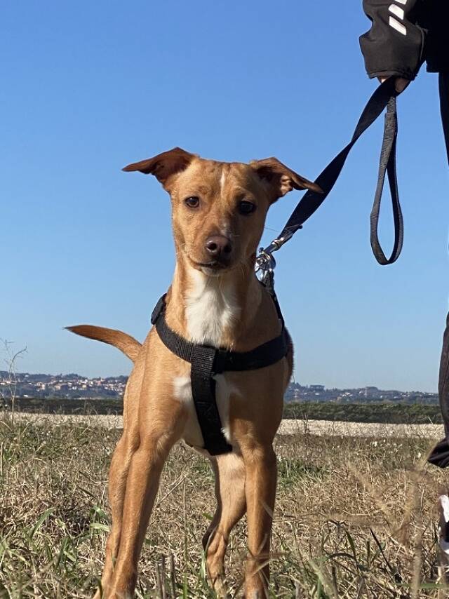 Tokio ist mir ihren rund 14 Monaten (Stand Januar 2026) die jüngste der drei. Sie hat hellbraunes Fell, eine weiße Brust, eine ebenso weiße Linie zwischen den Augen und einen Blick, der die Welt voller Neugierde aufzusaugen scheint. Unsere Mitarbeiterin vor Ort berichtet, dass Tokio die unbekümmertste des Trios sei, immer fröhlich, voller Unternehmergeist. Sie sei einfach nur eine liebe kleine Hündin, die sich über jeden Besuch und jede noch so kleine Aufmerksamkeit freue. Tokio gehe sehr gerne spazieren, an der Leine schon ziemlich gut, und würde sehr gut zu einer aktiven Familie passen, gerne auch mit (nicht allzu kleinen) Kindern.