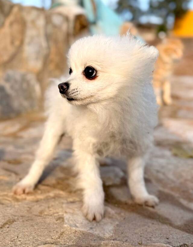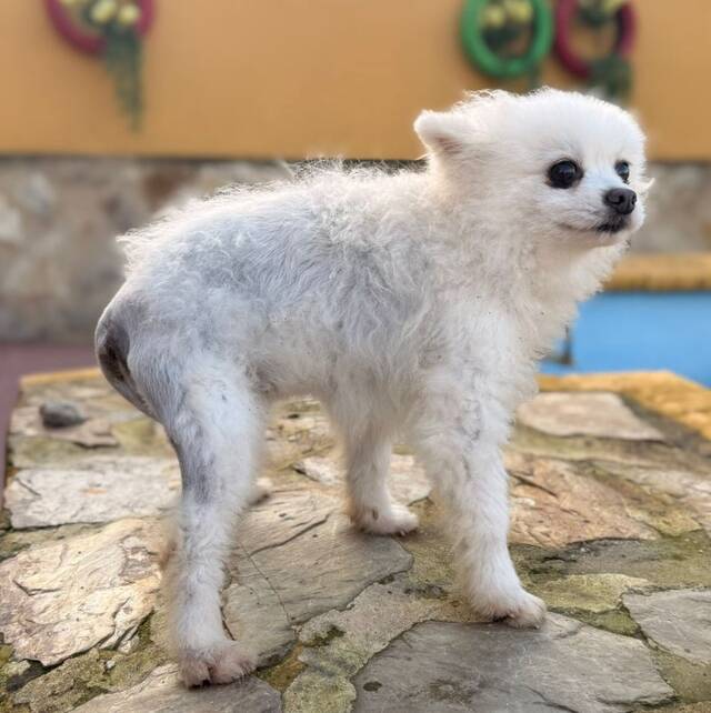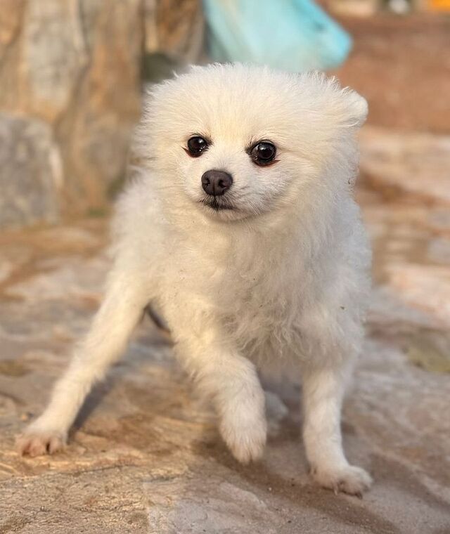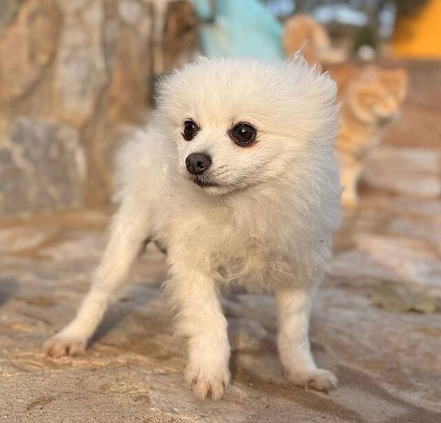 Beschreibung: Geboren: ca. Januar 2017 Rasse: Pomeranian Größe/Gewicht: ca. 25 cm Schulterhöhe bei 3,2 kg Standort: Auffangstation Linares/Südspanien Kastriert, gechipt mit EU Ausweis, geimpft und negativ auf Mittelmeerkrankheiten getestet