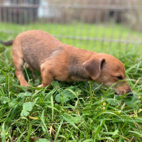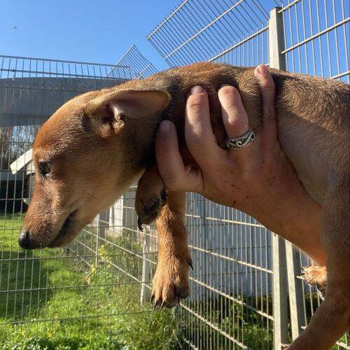 Geboren: 29.10.2025 Geschlecht: männlich Rasse: Dackel-Mischling Schulterhöhe: im Wachstum Kastriert: nein Geimpft: ja Gechippt: ja Mittelmeercheck: nach Einreise Krankheiten: keine bekannt Katzenverträglich: denkbar Hundeverträglich: ja Kinder: ja Handicap: nein Aufenthaltsort: Rifugio Arca Sarda, Sardinien im Rifugio seit: 29.12.2025