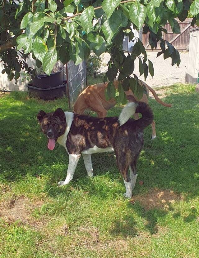 Aresz ist immer noch etwas zurückhaltend, aber wenn seine Zwingerkollegin Sántal dabei ist, dann springt er über seinen Schatten. Eine souveräne Ersthündin in seinem zukünftigen Zuhause würde ihm gut tun.