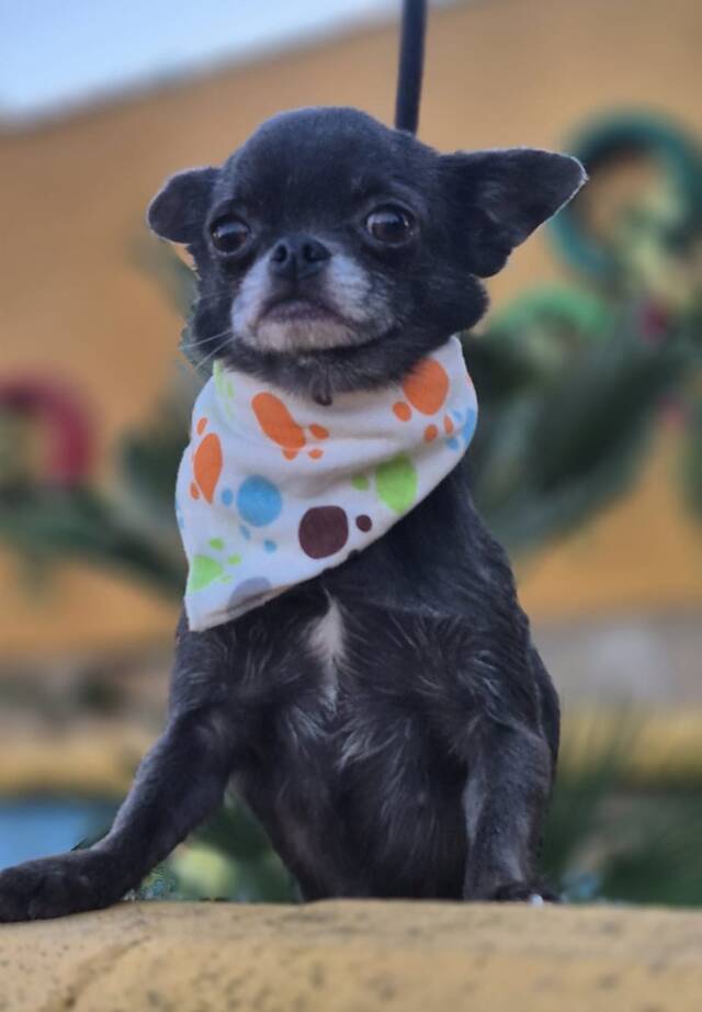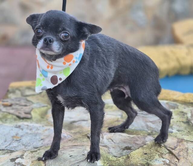 Beschreibung: Geboren: ca. April 2021 Rasse: Chihuahua Größe/Gewicht: ca. 28 cm Schulterhöhe bei 3,6 kg Standort: Auffangstation Linares/Südspanien Kastriert, gechipt mit EU Ausweis, geimpft und negativ auf Mittelmeerkrankheiten getestet