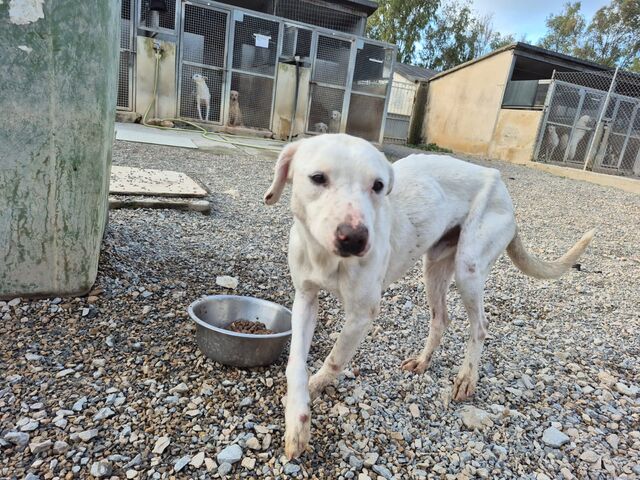 Beschreibung: Bianchino gibt sich auf! Wir suchen dringend und schnell eine Familie oder Pflegestelle für ihn. Hier ist seine Geschichte: Der junge Rüde lebte, sich selbst überlassen, auf einem großen Grundstück, dass Deutschen gehörte, die immer nur sporatisch mal vor Ort waren. Lediglich ein Nachbar hat hier und da mal nach dem Rechten geschaut. Bianchino hat nicht weiter gestört. Dann wurde dieses Grundstück verkauft und für den Straßenbau erschlossen. Ein sicheres Gebiet wurde nun für einen Hund gefährlich und es kam, wie es kommen musste, Bianchino wurde von einem Auto erfasst und angefahren. Glück im Unglück, dass es mit schlimmen Schürfwunden und nicht mit Knochenbrüchen für den jungen Burschen ausging. Er kam sofort in eine Klinik und wurde körperlich wieder hergestellt. Nach einem Monat stationärem Aufenthalt kam er ins Canile. Das war im August 2025. Der ca. 2022 geborene Rüde leidet sehr unter den Zuständen vor Ort, er frisst schlecht und nimmt stetig ab. Patrizia hat Sorge, das es ein schlimmes Ende mit ihm nimmt. Alle Tests auf Mittelmeererkrankungen waren negativ und der Tierarzt kann keine gesundheitliche Ursache feststellen. Bianchino ist ca. 48cm groß und hat derzeit max. 15kg….Tendenz fallend. Er ist freundlich, wenn auch ein wenig vorsichtig. Vertraut aber schnell, wenn er merkt, dass man es gut mit ihm meint. Er braucht ein ruhiges Umfeld, nette Menschen, die sich um ihn sorgen und mit offenem Herzen aufnehmen. Bitte schnell melden, wer Bianchino helfen kann!