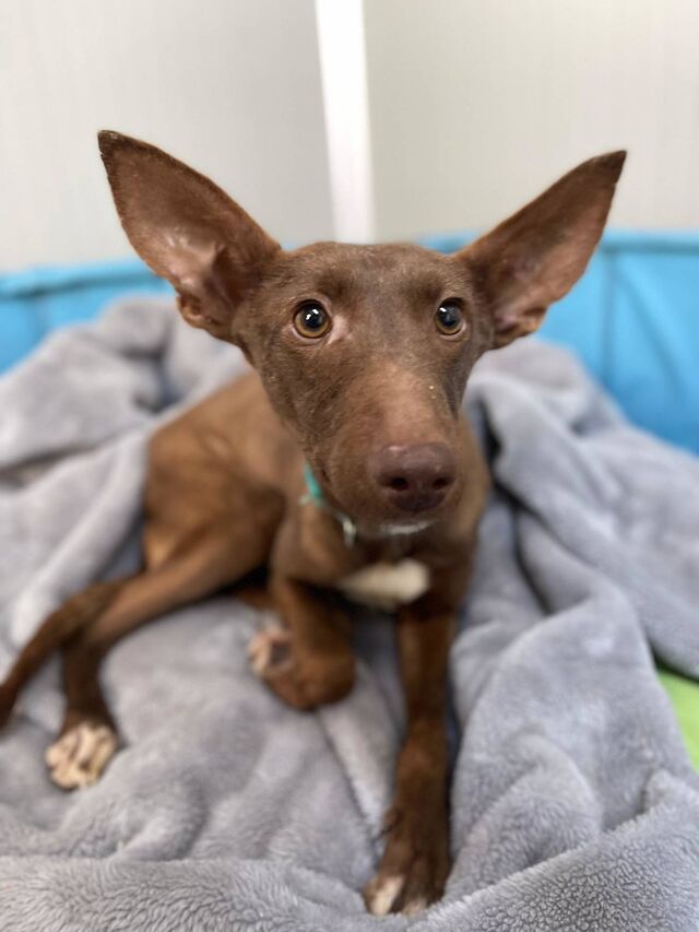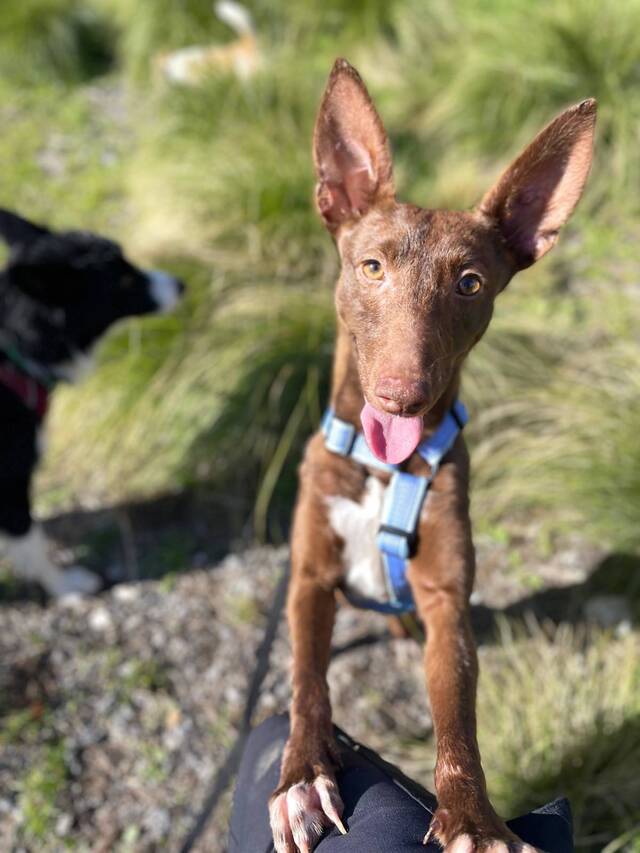 Beschreibung: Nach ihrer ersten Erholungsphase durfte Moana in eine Gruppe Hündinnen ziehen – darunter auch andere Podencos – und sofort zeigte sie ihren wahrer Charakter: Moana ist eine extrem verspielte, fröhliche und aktive junge Podenco-Hündin, voller Energie, Lebensfreude und Charme. Sie liebt es, im Hundeauslauf zu rennen, mit anderen Hunden zu spielen und Zeit mit den freiwilligen Helfern zu verbringen. Beim Kraulen auf dem Rücken wirft sie sich begeistert auf den Boden und fordert fröhlich zum Spielen auf. Moana ist sehr lernwillig, klug und stark futtermotiviert , sodass sie sicher schnell die Grundsätze im Zusammenleben mit dem Menschen verstehen wird. Für Moana wünschen wir uns ein aktives Zuhause, idealerweise mit mindestens einem weiteren Hund, denn im Rudel fühlt sie sich besonders wohl. Bei neuen Hunden kann sie anfangs etwas aufgeregt und bellfreudig reagieren, ist dabei aber stets freundlich und sozial. Nach kurzer Zeit entspannt sie sich und schließt neue Freundschaften. Ob Moana sich in einer städtischen Umgebung wohlfühlen würde, können wir noch nicht sicher sagen. Wir sehen jedoch, dass sie mit einem souveränen Hund an ihrer Seite deutlich mutiger und neugieriger ist und neue Situationen gut meistert.