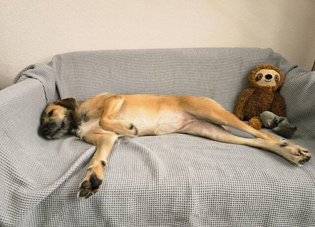 Update 14.04.25 Wenn man über einen neuen vierbeinigen Partner nachdenkt, überlegt man sich ja vorher auch: Was möchte ich später mit meinem Hund machen? Was habe ich selbst für Neigungen oder Hobbys? Es gibt so viele Möglichkeiten. Falls Sie Bergsteigen und Klettern lieben oder über die Ausbildung zum Rettungshund nachdenken, hätten wir – so wie es auf uns jetzt wirkt – die passende Kandidatin für Sie: Ursula klettert leidenschaftlich gerne! Sie macht das richtig gut und auch oft. Selbst kniffelige Stellen erklimmt sie bedächtig und grazil. In einer Rettungshundestaffel können wir uns die Hübsche auch vorstellen, da sie wirklich trittsicher umherstöbert und Einsatz zeigt. Wir sehen bei Ursula Potenzial, das selbstverständlich unter fachkundiger Anleitung entsprechend gefördert und aufgebaut werden muss. Man bekommt keinen fertigen Hund, sondern hat die schöne Aufgabe, sich das gemeinsam zu erarbeiten, was die Bindung ungeheuer fördert. Man muss bedenken, dass Ursula aus dem „Nichts“ eines Canile kommt und für sie ALLES neu ist. Sie ist erst seit Mitte Januar 2025 auf ihrer Pflegestelle und entwickelt sich dort prima. Lassen wir sie selbst berichten: „MENSCHENSKINDER - was für ein Tag heute! Da war ich, das Hasenherzchen, zum ersten Mal im Pool zum Schwimmen und hatte, ehrlich gesagt, wirklich die Hosen voll. Aber dann merkte ich schnell, dass das wunderbar funktioniert, wenn ich einfach drauflos paddele (mit Schwimmweste). Die Trainerin hat mich ganz oft gelobt. Als ich raus war aus dem Laden, bin ich mit stolzgeschwellter Brust über die Straße bis zum Auto marschiert. Oh ja - es hat mir im Nachhinein wirklich super viel Spaß gemacht 👍🏼 Ja, Sie lachen jetzt vielleicht, aber mein Pflegefrauchen gibt sich in allem sehr viel Mühe mit mir. Erst wollte ich nie rein in die Auto-Box, kurze Zeit später nicht raus. Und jetzt fahre ich seit drei Wochen ganz hinten tapfer OHNE Box hinter der Heckklappe mit. Seit drei Tagen habe ich verstanden, was SITZ bedeutet, und mache das jetzt so oft, wie ich kann, um ein Leckerchen zu bekommen 🎉 Sogar der Marktmetzger hatte das vorhin bemerkt und gab mir dafür ein extra großes Stück Prosciutto, woraufhin ich mein Kunststückchen noch ein paar Mal wiederholt habe😁 Aber auch so komme ich jetzt öfters aus mir heraus. Mein Kuscheltier trage ich zuhause schon allein herum. Ein Faultier, müsst ihr wissen. Wenn es allerdings quietscht, bin ich ganz schnell weg, haha. Momentan habe ich nette Hundekumpels um mich herum, denen ich täglich ein wenig mehr vertraue. Kleinere Hunde sind mir dabei lieber 😉 Ich jedenfalls tue keinem etwas und bin froh, wenn mein Pflegefrauchen mich draußen ruft. Dann flitze ich mega schnell zu ihr zurück, lasse mich auf den Popo plumpsen und warte ungeduldig auf meine Belohnung. Einzig meine eigenen vier Wände sind mir oftmals noch suspekt: Das Wohnzimmer mit den vielen fremden Menschen in dem bunten Kasten zum Beispiel ist mir nicht geheuer. Das übe ich täglich, während ich mit meiner Pflegemama abends auf der Couch kuschele. Draußen mache ich um ganz Fremde einen großen Bogen und bei denen, die ich schon gut kenne, stelle ich mich auch für ein Leckerchen mit an ☺️ Leider hat sich noch niemand für mich interessiert, wahrscheinlich weil ich ein „Schisserchen“ bin, aber daran arbeite ich ja gerade! Vielleicht möchte mich jemand zu seinem souveränen kleinen Hund dazu adoptieren? Ich liebe kleinere Hunde und bin ganz süß zu ihnen. Jetzt gehe ich erst mal schlafen und träume von einer eigenen Familie mit Haus und Garten, einem Hundefreund und einer Klettertour in den Bergen. Bis bald? Ruft mich an! Eure Ursula.
