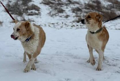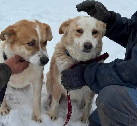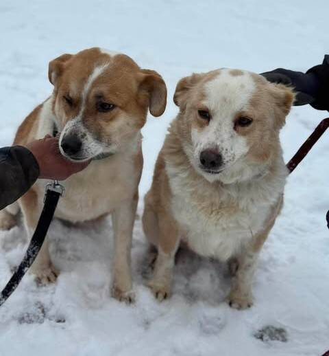 Gerlinde und Gesine sind vermutlich Mutter und Tochter – beide gezeichnet von ihrem schweren Leben: Mama Gerlinde fehlt ein Großteil ihres linken Ohrs und Gesine ist auf dem rechten Auge blind. Trotz alledem sind sie zwei ganz liebenswerte Hundedamen: Gerlinde sehr offen, freundlich und den Menschen zugewandt; Gesine auch freundlich, fremdelt aber am Anfang noch, braucht ein wenig Zeit, sich an neue Menschen zu gewöhnen. Doch beide sind sehr lieb.