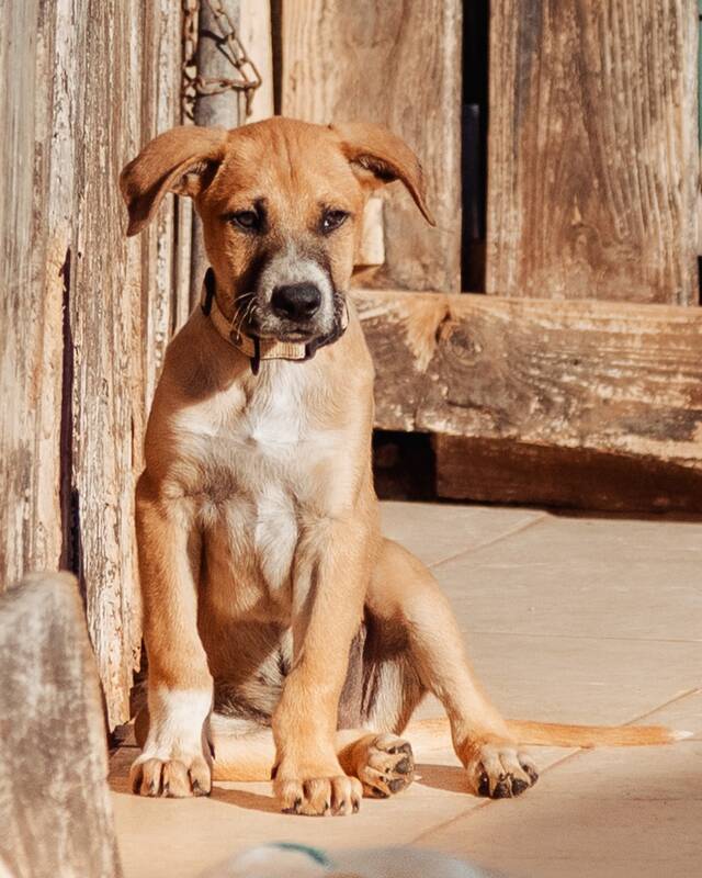 Der hübsche Bud wurde gemeinsam mit seiner Schwester Bexy und ihrer Mama Mora im Norden der Insel an einem Strand gefunden. Die kleine Familie kam zunächst in die Perrera von La Oliva. Da auf der Finca Esquinzo ein Platz frei war, durften sie zu Pancho und Andrea ziehen und dort in Ruhe ankommen.