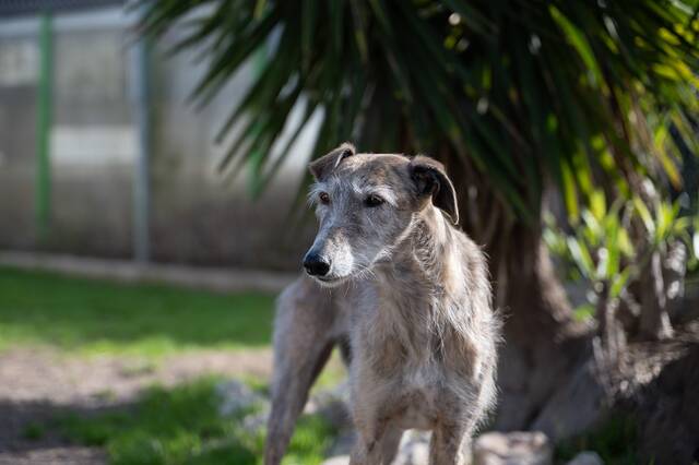 Beschreibung: Unsere Lana ist eine wunderhübsche Galgohündin, die mit ihrer Eleganz und Sanftmut besticht. Lana ist aber auch eine Hündin die sich Menschen gegenüber sehr ängstlich zeigt. Sie braucht galgoerfahrene Menschen, die bereit sind sich auf einen ängstlichen Hund einzulassen und die entsprechenden Rahmenbedingungen bieten. Mit Zeit und Geduld wird Lana bestimmt aus ihrem Schneckenhäuschen herauskommen, sie möchte gerne, aber ihr fehlt einfach der Mut dazu. Mit anderen Hunden ist Lana verträglich, so dass sie auch gerne zu einem souveränen Ersthund vermittelt werden kann. Wer möchte Lana an die Pfoten nehmen ? Ihr zeigen wie wundervoll das Leben sein kann und Geduld hat bis sie Vertrauen fasst. Melden Sie sich gerne bei Lanas Vermittlerin