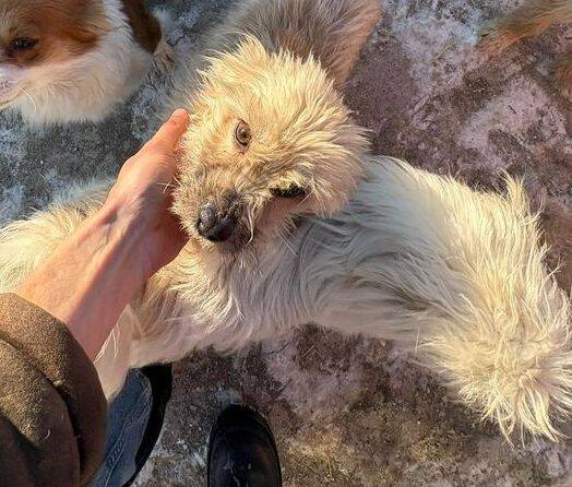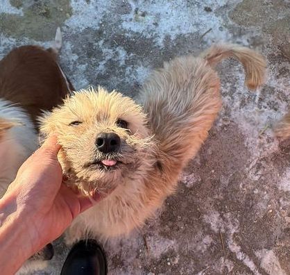 Er sitzt jetzt in den bitterkalten Außenkennel der Tötungsstation. Gewärmt von etwas Stroh versucht er durchzuhalten. Über die wenige menschliche Zuwendung am Tag freut er sich sehr und seine Augen flehen einen an: nimm mich mit!
