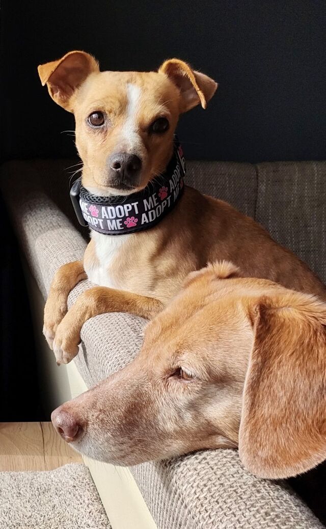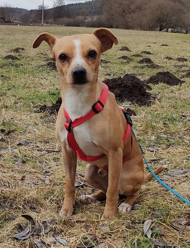 Geboren: ca. 02/2024 Rasse: Pinscher-Mischling Größe/Gewicht: ca. 38 cm Schulterhöhe bei 8 kg Herkunft: Linares/Südspanien Standort: Auf Pflegestelle im Landkreis Amberg-Sulzbach/Bayern Kastriert, gechipt mit EU Ausweis, geimpft und negativ auf Mittelmeerkrankheiten getestet