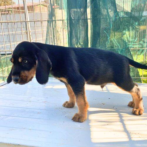 Geboren: 01.11.2025 Geschlecht: männlich Rasse: Segugio-Mischling Schulterhöhe: im Wachstum Kastriert: nein Geimpft: ja Gechippt: ja Mittelmeercheck: nach Einreise Krankheiten: keine bekannt Katzenverträglich: denkbar Hundeverträglich: ja Kinder: denkbar Handicap: nein Aufenthaltsort: Rifugio Arca Sarda, Sardinien im Rifugio seit: 31.12.2025