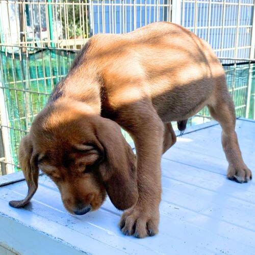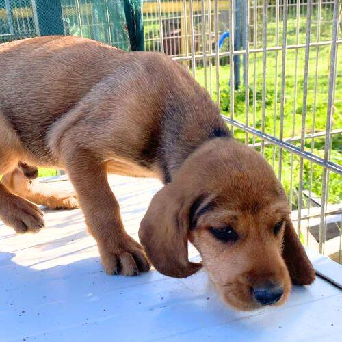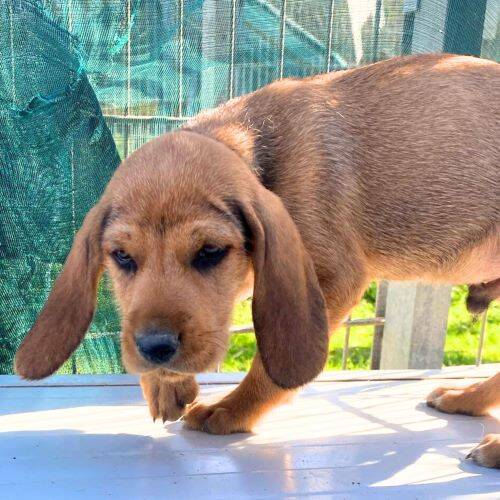 Geboren: 01.11.2025 Geschlecht: männlich Rasse: Segugio-Mischling Schulterhöhe: im Wachstum Kastriert: nein Geimpft: ja Gechippt: ja Mittelmeercheck: nach Einreise Krankheiten: keine bekannt Katzenverträglich: denkbar Hundeverträglich: ja Kinder: denkbar Handicap: nein Aufenthaltsort: Rifugio Arca Sarda, Sardinien im Rifugio seit: 31.12.2025