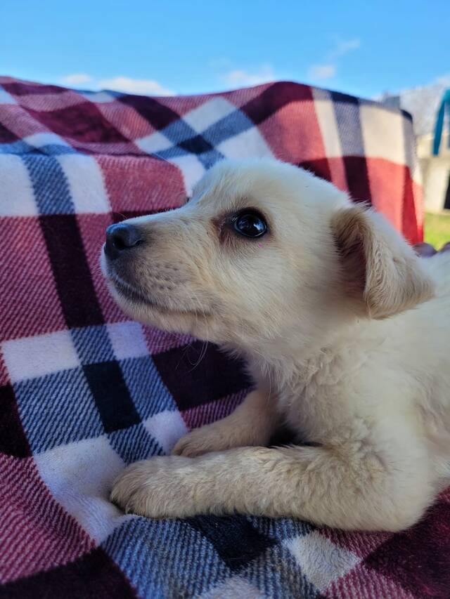 Beschreibung: Cloud wurde mit ihren 5 Geschwistern vor Weihnachten für Vagelio in einem Karton an einer Tankstelle neben ihrer Station abgegeben. Die 6 Welpen (3 Jungs und 3 Mädchen) saßen frierend, abgemagert und aneinander gekuschelt in dem Karton. Vagelio hat sie aufgepäppelt und gut versorgt. Die 3 Rüden haben bereits eigene Familien gefunden, die Hündinnen Cloud, Snow und Panda als die Kleinste der Geschwister, suchen noch ein Zuhause. Wir wünschen uns für die kleine Cloud, dass sie auch schnell eine liebe Familie findet und die Station bald verlassen kann.