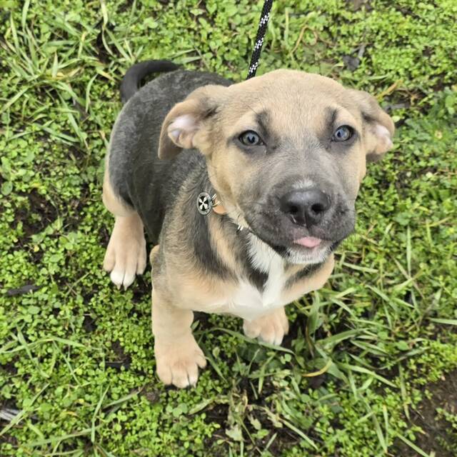 Rübe, das einzige Mädchen der Gruppe, ist eine echte Entdeckerin. Sie ist munter, liebt Aufmerksamkeit der Menschen und spielt immer gerne. Sie folgt dem Hund der Pflegestelle sehr gut, albert mit ihm im Hof rum und lernt von ihm.
