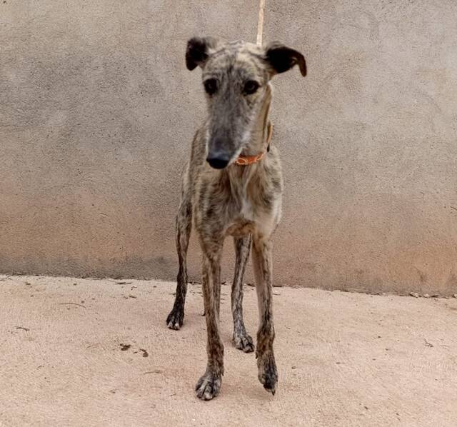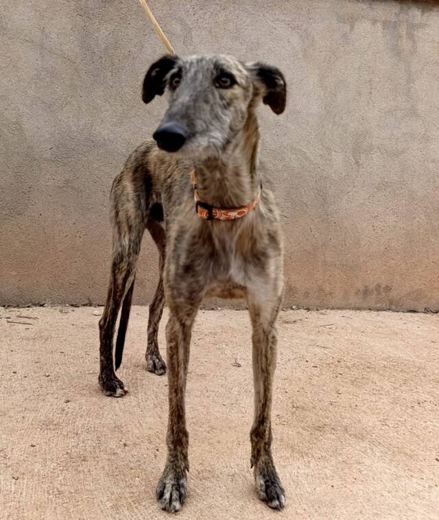 Der Rüde ist ein Galgo (-Mischling), auf Jagdtrieb sollten Sie sich einstellen. Die Rasse muss regelmäßig die Möglichkeit des gesicherten Freilaufs mit Artgenossen bekommen, um glücklich und ausgelastet zu sein, denn sie sind zum Rennen geboren. Dann sind sie im Haus meist ruhig, sanft und sensibel. Der Freilauf oder Garten sollte auf jeden Fall hoch eingezäunt und ausbruchsicher sein. Bitte informieren Sie sich im Vorfeld über die Bedürfnisse eines Galgos.