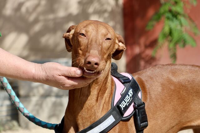 Skay (4490) Podenco Andaluz Hündin, geb. am 01.07.2024, hat eine Schulterhöhe von - wird nachgereicht - und wiegt - wird nachgereicht -.