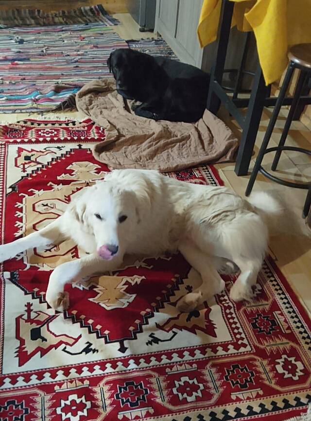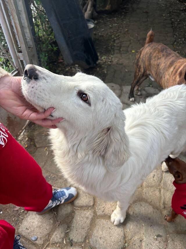 Puffo ist ein Mischling, in dessen Ahnengalerie neben Retrievern und Maremmanos wahrscheinlich weitere Vorfahren ihre Gene hinterlassen haben. Tierärztlicherseits steht z.B. auch der Bordercollie als ein möglicher Vorfahr von Puffo in Rede. Und Puffo ist noch ein Hundeyoungster,- ob seiner Größe eher ein Spätentwickler, dessen Persönlichkeit noch einiges Reifungspotential nach ob hat. Derzeit und in seinem gegenwärtigen Umfeld zeigt sich der junge Herr als ausnahmslos friedfertiger, aggressionsloser, rundumverträglicher Menschenanbeter mit wahrscheinlich einigen ‚Vorkenntnissen‘ im Umgang mit Zwei- und anderen Vierbeinern. Puffo versteht sich ohne ‚Wenn und Aber‘ mit Artgenossen beiderlei Geschlechts,- mit Katzen,- anderen Tieren,- Kindern………. Auch in der Gesellschaft von älteren Menschen ist Puffo ob seiner ruhigen und ausgeglichenen Wesensart vorstellbar. Puffo liebt es in menschlicher Gesellschaft zu sein,- genießt die Nähe seiner Bezugspersonen, von denen er sich niemals weit entfernt,- schon allein um immer erreichbar zu sein für Streicheleinheiten und Leckerligaben. Puffo ist leinenführig, geht aber auch problemlos ohne Leine mit seinen Menschen spazieren. Sich an haltgebenden Zweibeinern zu orientieren, scheint für Puffo nicht unbedingt ganz neu, sondern vielmehr ein Grundbedürfnis zu sein. Dieses mit Sicherheit, Zuwendung und unbedingter Vertrauenswürdigkeit aufzuwiegen, sollte sich für Puffos zukünftige Familie von selbst verstehen. Hinzuzulernen wird Puffo noch so einiges haben und dafür liebevoll-stringenter Lehrmeister bedürfen. Die Motivation des groß-artigen Hundebuben diesbezüglich ist vom Allerfeinsten.