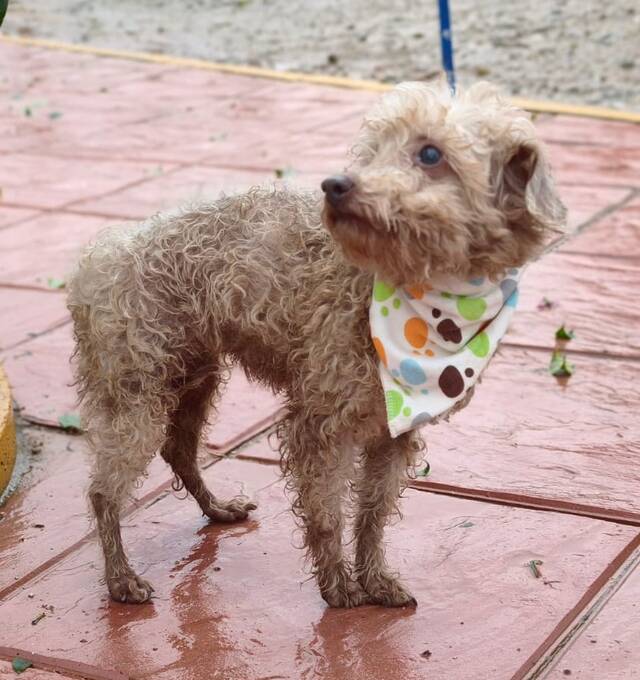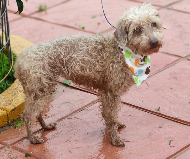 Beschreibung: Dieses arme Mäuschen ist unsere Nina die, mit Hilfe eines Tickets aus der Hölle, in desolatem Zustand von einem Vermehrer gerettet werden konnte und nun in unserer Auffangstation angekommen ist. Eingesetzt wurde sie in der sogenannten Pudelzucht (die mit einer seriösen Zucht nichts zu tun hat, denn die Hunde werden einfach nur zum Generieren von Welpen eingesetzt). Diese Hunde kennen kein normales Hundeleben, sondern werden als „Ware“ Hund gehalten und erhielten nur die notwendige Zuwendung damit sie für das miese Geschäft der Hundevermehrung eingesetzt werden können. Das soll Nina nun alles hinter sich lassen und von hier an soll sie auf den Weg zu einem schönen neuen Leben gebracht werden. Die ca. im März 2022 geborene Nina hat eine Schulterhöhe von ca. 29 cm bei derzeit 2,8 kg. Wir wünschen uns für Nina eine Familie die keine Erwartungen an sie hat, denn wir wissen einfach nicht was sie im Alltag alles kann und was sie alles noch lernen muss. Oftmals ist es für die Hunde eine große Hilfe, wenn sich im neuen Zuhause bereits ein souveräner Hund befindet der ihr erstmal alles zeigen kann. Falls Sie wenige Anforderungen, viel Zeit, Geduld und ein großes Herz für Nina haben, dann melden sie sich bei uns, denn sie könnte schon bald komplett geimpft, gechipt, kastriert, entwurmt und auf Mittelmeerkrankheiten getestet nach Deutschland ausreisen. Sofern eine Abholung in Nordbayern für Sie kein Problem ist, freuen wir uns über ihre aussagekräftige Anfrage.