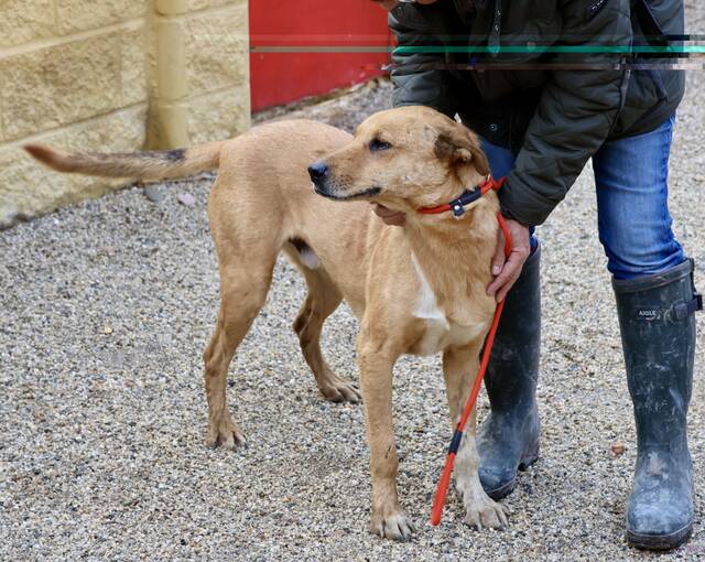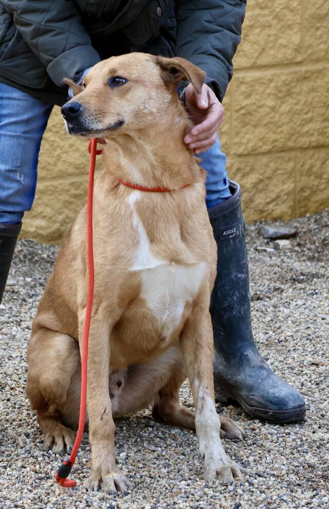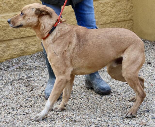 Huesos (3980) Mischlingsbub, geboren am 01.01.2021, wiegt 27 kg und hat eine Schulterhöhe von etwa 60 cm. Huesos wurde in lebensbedrohlichen Zustand gefunden, hat sich aber vollkommen erholt und sucht jetzt seine Familie.