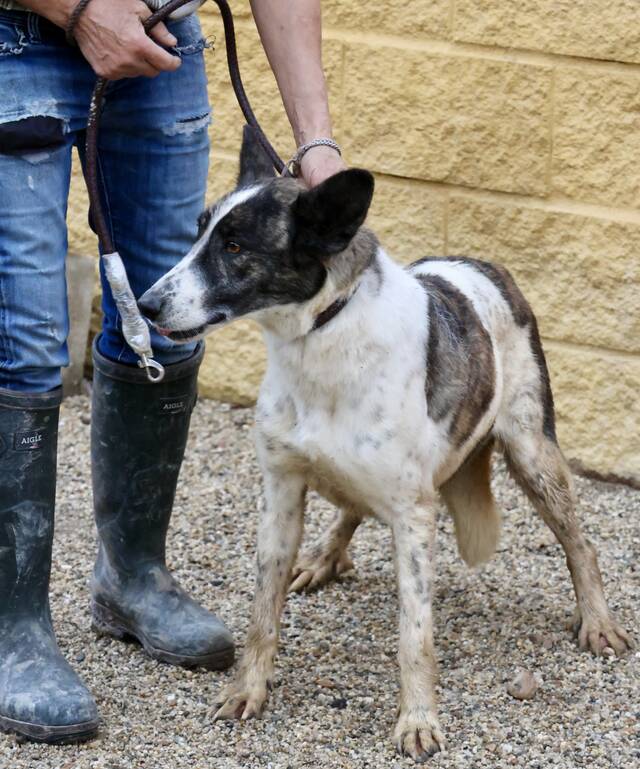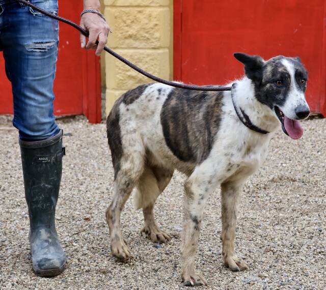 Rodolfo (4341) Mix Rüde, geb. am 14.07.2022, hat eine Schulterhöhe von 56 cm und wiegt 24 kg.