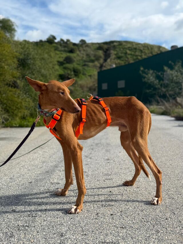 Beschreibung: Arun (ca. 02/2023, ca. 64 cm) ist ein wunderschöner Podenco Canario, der Ende Januar 2026 in unser spanisches Partnertierheim TripleA in Marbella kam. Er war kurz vorm Verhungern und ungechipt – ein Schicksal, das er mit vielen Windhunden gegen Ende der Jagdsaison in Spanien teilt. Sein Name bedeutet „Morgendämmerung“ und „Sonne“, und wir finden, das beschreibt ihn perfekt. Arun zeigt sich sehr ruhig und gelassen. Er bellt nicht, springt nicht wild umher und rennt auch nicht, sondern bewegt sich langsam und vorsichtig. Obwohl er in manchen Situationen noch ängstlich ist, hat er prinzipiell keine Angst vor Menschen und wenn er einen der ehrenamtlichen Gassigänger kennt, genießt er es auch sehr gestreichelt zu werden. Schnelle, hektische Bewegungen können ihn aber noch erschrecken.