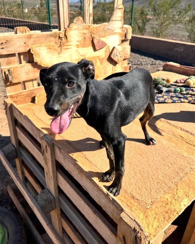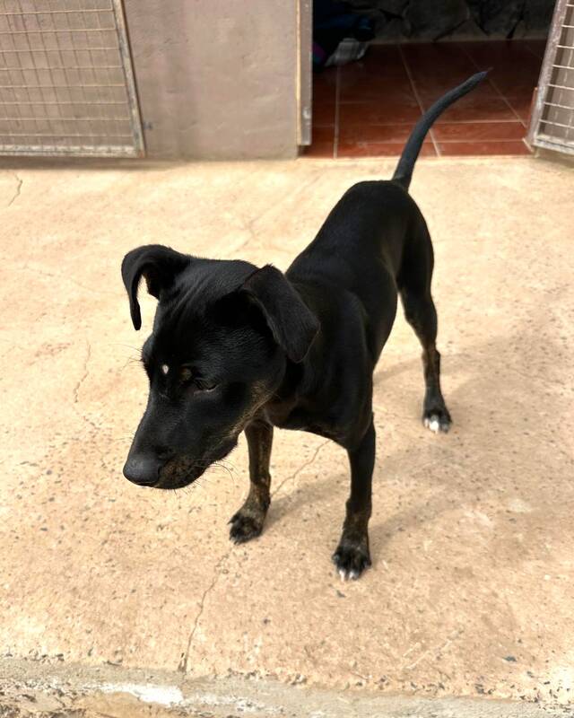 Der etwa sechs Monate alte Mischlingswelpe Simba fiel unserer Tierschutzkollegin bei einem Besuch in der Perrera sofort ins Auge. Da eine Perrera – nicht zuletzt wegen des fehlenden Impfschutzes – kein geeigneter Ort für einen jungen Welpen ist, hat sie ihn direkt mitgenommen und auf die Finca gebracht