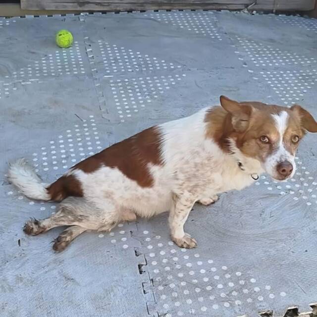 Milo wurde von einem jungen Mädchen gefunden, nachdem er bewegungsunfähig auf der Straße lag - vermutlich hatte er zuvor einen Autounfall gehabt. Sie brachte ihn unverzüglich in tierärztliche Behandlung, da er seine Hinterbeine nicht mehr richtig einsetzen konnte und seinen hinteren Bereich hinter sich her zog.