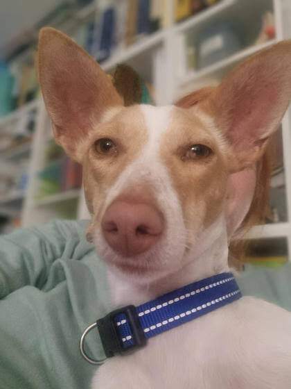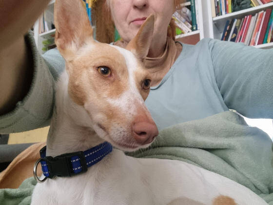 Menschen gegenüber ist Hada3 freundlich und sucht den Kontakt. Gerne nimmt sie Streicheleinheiten an, ist verschmust und sogar hochheben lässt sie sich. Mit ihren Artgenossen hat sie sich im Shelter und auf ihrer Pflegestelle als verträglich gezeigt. Sie tobt und spielt auch gerne mal eine Runde. Sicher hätte sicher nichts gegen einen Hundekumpel in ihrem Zuhause einzuwenden. Eine Katze könnte ebenfalls teils ihres neuen Rudels sein, allerdings sollte diese hundeerfahren sein. Hada3 sucht zwar nicht nach Streitigkeiten mit Katzen, aber bellt diese trotzdem ab und zu an. Leine und Geschirr konnte Hada3 bereits kennenlernen und das läuft auch schon ganz ordentlich, solange keine Ablenkung da ist. Treppensteigen hat sie bereits gemeistert. Auto fahren konnte Hada3 auch schon kennenlernen, allerdings sollte dies in kleinen Schritten mit ihr geübt werden, da es sie noch sehr stresst. Das Hundeeinmaleins muss der Podenca erst noch bei gebracht werden. Sie ist aber hochmotiviert zu lernen, also sollte das mit der richtigen Unterstützung gut gelingen. "Sitz" konnte die Hündin auf ihrer Pflegestelle schon lernen und warten bis sie an der Reihe ist zum anleinen, tut sie auch schon brav.