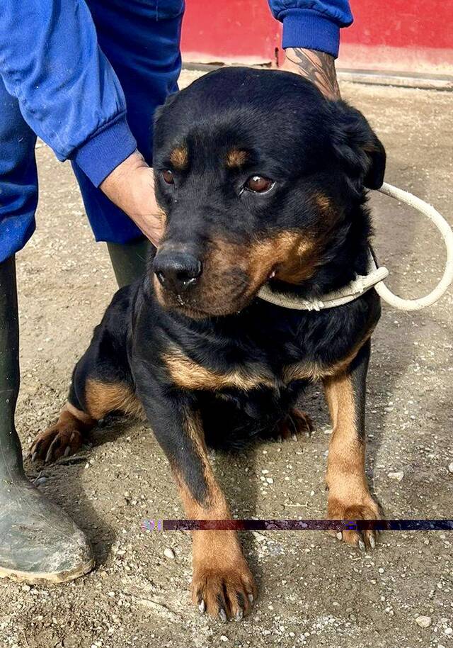 Kelly Rottweiler Hündin, geb. ca. 02/2023 , hat eine Schulterhöhe von 59 cm und wiegt aktuell 42 kg.