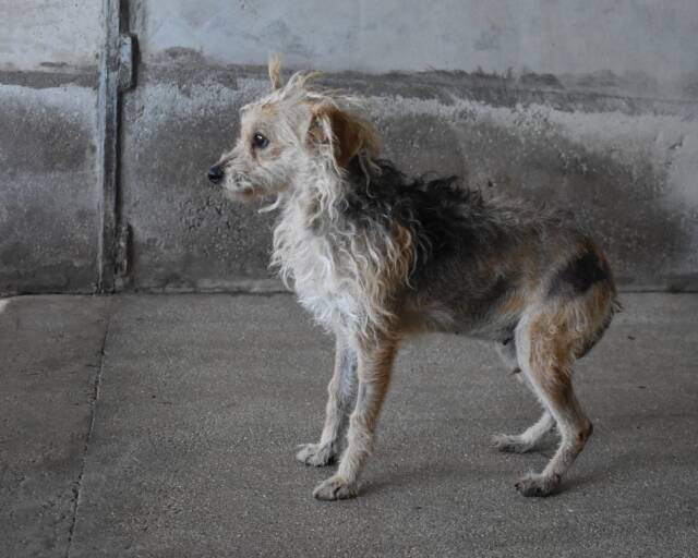 ich weiß, ich sehe aus, als hätte mir gerade jemand voller Spaß und Übermut durch das Fell gewuschelt - aber glaubt mir, der Zustand meines Haarkleids hat als Ursache keine liebevolle Berührung durch Menschenhand. Ganz im Gegenteil, es wurde schon sehr sehr lange nicht mehr gepflegt, wenn überhaupt jemals. Nicht dass ich mich dagegen gewehrt hätte. Aber es war halt nicht im Angebot meines bisherigen Lebens. Jetzt gebe ich optisch den italienischen Straßenpunk und bin bei aller Tragik auch irgendwie witzig. So zaubere ich ein Lächeln ins Gesicht meiner Betrachter. Ich hoffe sehr, dass es bei Euch wirkt.