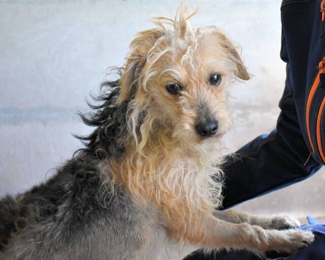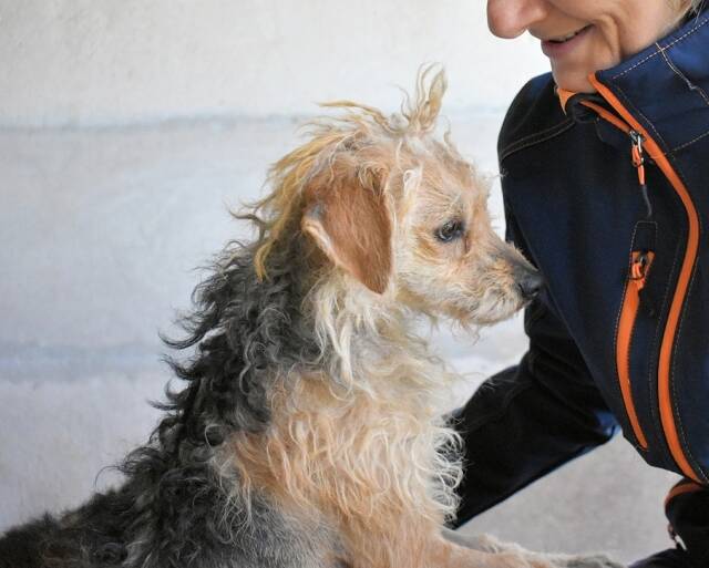 Wenn Ihr so wollt, könnt Ihr mich sogar als Glückpilz bezeichnen, denn ich werde freigelassen, sobald mich jemand adoptieren will. Du zum Beispiel!? Wär das was mit uns? Dann könnte ich entrinnen und Dir und Deinen Lieben zeigen, was ich so alles in meinem Reiserucksack hab an Liebe und Dankbarkeit, Drolligkeit und Charme und natürlich Bescheidenheit. Ich brauch nicht viel. Eine Investition in ein feines Bädchen beim Hundefriseur oder in deiner Duschwanne mit anschließender Bürstenmassage und einem wohlverdienten Vesper danach würde schon viel Gutes und Schönes bewirken. Eine Salbe für meinen nicht juckenden Haarausfall wäre eine große Erleichterung. Hier sehen wir nie einen Tierarzt, da sterben wir vorher. Ich würde duften und Ihr würdet staunen, wie stolz und gerade ich dann dastehe und mich des Lebens freue. Wenn ich Euch sehe, lasse ich meine Äuglein aufleuchten.