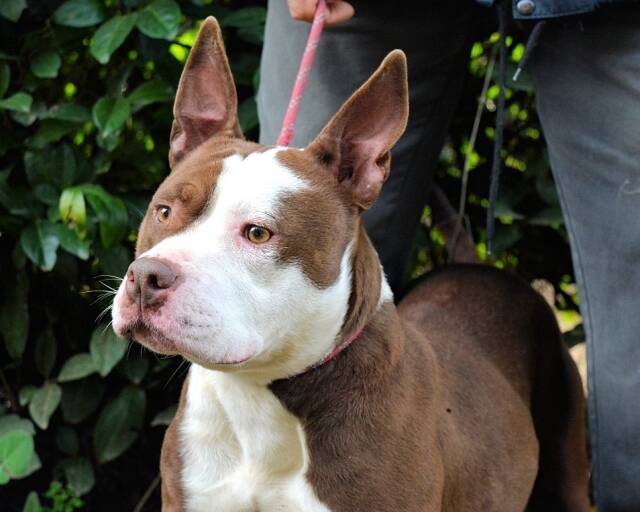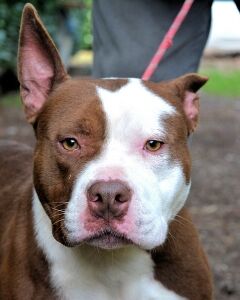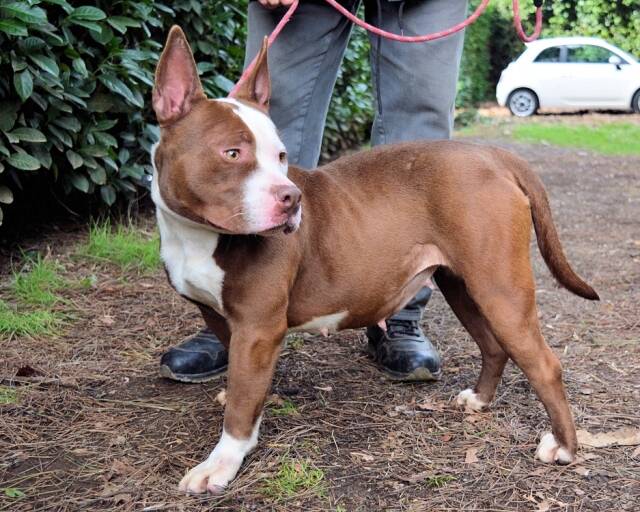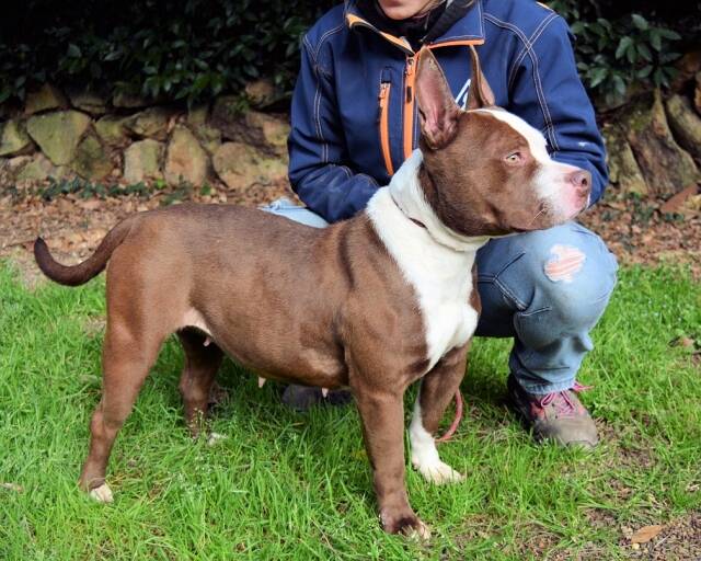 Diese junge, aktive Hündin bringt neben ihrer sportlichen Figur und der geradezu perfekten Größe auch noch eine unverwechselbare Fellzeichnung in Weiß und Schoko-Braun mit. Zudem lässt ihr Gesichtsausdruck zweifelsfrei erkennen, dass der Kopf nicht nur dazu da ist, dass es oben nicht reinregnet!