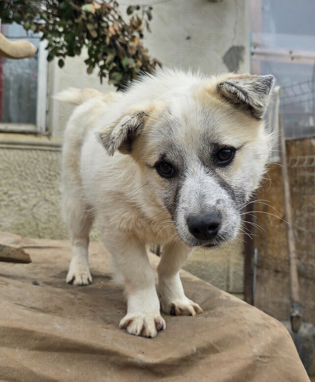 Jubata, Mischlingsmädchen, geboren am 01.07.2025, hat derzeit eine Schulterhöhe von ca. 35 cm und wiegt momentan etwa 9 kg. Sie wird klein bleiben.