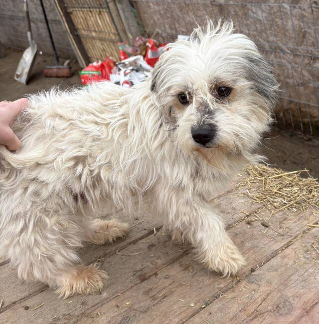Joschi, Mischlingsjunge, geboren am 05.05.2023, hat eine Schulterhöhe von ca. 30-35 cm und wiegt ca. 8 kg.