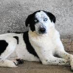 War es eine Deutsche Dogge (eher nicht), oder ein Weimaraner (nicht erkennbar), ein Sibirischer Husky (mit ziemlicher Sicherheit: nein), ein Australian Shepherd oder Border Collie (wer weiß), oder vielleicht doch ein Dalmatiner (die verräterischen schwarzen Punkte…)? Wir haben natürlich keine Ahnung, woher Nyxiels wunderschöne milchig-hellblauen Augen kommen. Vielleicht gibt es in ihrer Verwandtschaft jemanden der oben genannten Rassen, der ihr die ungewöhnlich hellen Augen vererbt haben könnte. Oder vielleicht handelt es sich einfach nur um eine wunderhübsche Laune der Natur.
