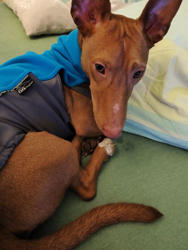 Manuel ist ca. 2,5 Jahre alt und hat eine Schulterhöhe von 32 cm. In Spanien wurde er positiv auf Leishmaniose getestet. Der Folgetest im Dezember 2025 in Deutschland war negativ. Manuel bekommt aktuell morgens und abends als Medikation Allopurinol, dazu purinarmes Futter. Manuels Pflegefamilie arbeitet intensiv mit ihm zusammen und bietet ihm Stabilität und Struktur. Aber das braucht Zeit. Wenn Manuel bei seinen Menschen angekommen ist, ist er ein unglaublich lustiger, charmanter kleiner schlauer Hund. Mit wachsendem Vertrauen wird er sich zu einem wirklich wunderbaren Begleiter entwickeln. Er ist sehr liebevoll mit seiner Pflegefamilie. Seine aktuelle Pflegefamilie wird bald wieder arbeiten und alleine gelassen zu werden ist derzeit Manuels größte Herausforderung. Er versteht es nicht, bellt dann und ist traurig und frustriert. Was Adoptanten über Podencos wissen müssen: Ursprünglich für die Kaninchenjagd gezüchtet, liegt ihnen das Jagen und Stöbern bereits in den Genen. Zumindest am Anfang sollten Podencos beim Spaziergang ausschließlich an einem Sicherheitsgeschirr geführt werden. Sichten sie Wild, würden sie durchstarten und es verfolgen. Podencos sind intelligent, haben eine schnelle Auffassungsgabe, haben eine enge Bindung zu ihren Menschen und sind oft sehr liebevoll, loyal und anhänglich.