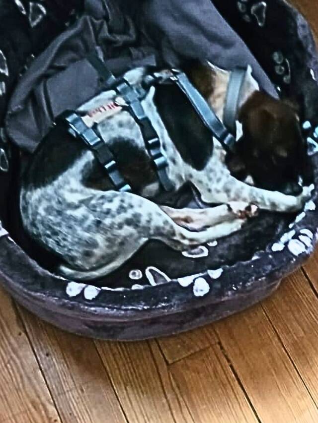 Auf der Pflegestelle zeigt sie sich bereits souverän: Sie bleibt schon mal alleine bei den beiden anderen Hunden und schläft entspannt, bis ihre Menschen zurück sind.