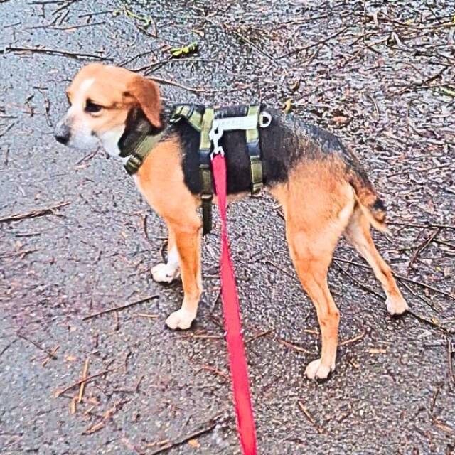 Im Alltag zeigt sich Pamela inzwischen stubenrein und läuft schon gut an der Leine. Spaziergänge klappen immer besser, solange die Umgebung überschaubar ist. An der Straße wird sie noch sehr ängstlich – hier hilft ihr vor allem ruhiges, gleichmäßiges Weitergehen. Bleibt man stehen, verfällt sie schnell in Unsicherheit, Bewegung gibt ihr hingegen Halt und Orientierung.