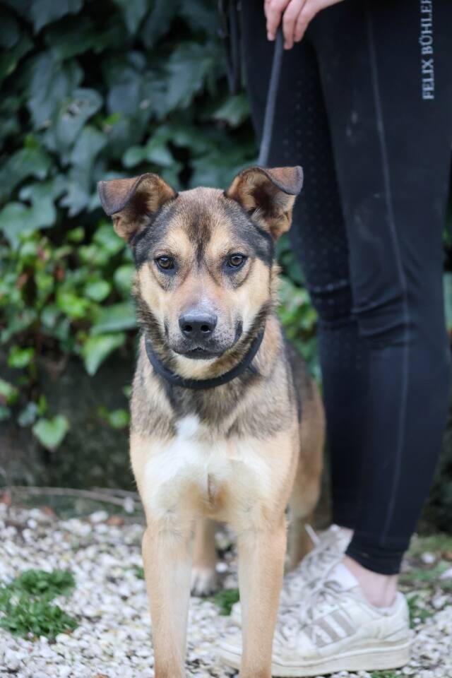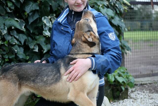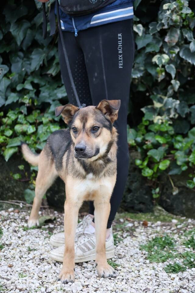 Aus dem unsicheren Welpen, der das Leben nur von kaltem Beton aus kannte, wird nun Schritt für Schritt ein junger Hund, der Vertrauen schenkt, Freude zeigt und voller Hoffnung nach vorne blickt.