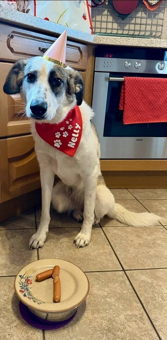 Seit ihrer Ankunft auf der Pflegestelle darf Nelly Schritt für Schritt Vertrauen fassen und lernen, mit neuen Situationen umzugehen. Vor Kurzem hat sie ihren zweiten Geburtstag gefeiert. Sie ist eine kluge, sensible Hündin mit Persönlichkeit, die aufmerksam beobachtet und ihre Umgebung genau wahrnimmt. In vielen Situationen zeigt sie sich inzwischen sicherer und gelassener – in manchen Momenten, etwa bei sehr lauten oder plötzlich auftretenden Geräuschen wie klappernden Anhängern oder von hinten kommenden Fahrrädern, reagiert sie jedoch noch etwas unsicher. Mit Geduld, Übung und der Unterstützung ihrer Menschen macht sie hier aber weiterhin Fortschritte.