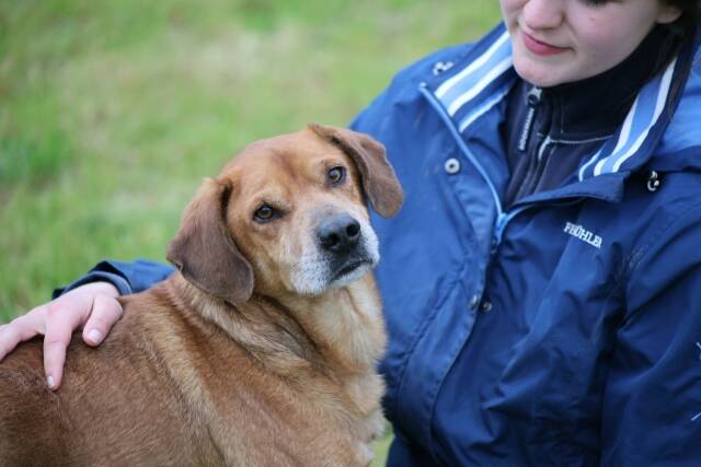 Ansonsten ist unser im doppelten Sinne goldener Houdini ein allerliebster Hund, der einfach endlich mal irgendwo ankommen und dazugehören möchte. Mit 45 cm Schulterhöhe und 15 Kilo Körpergewicht ist er nicht zu groß und nicht zu klein, eben genau der perfekte Houdini.