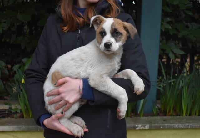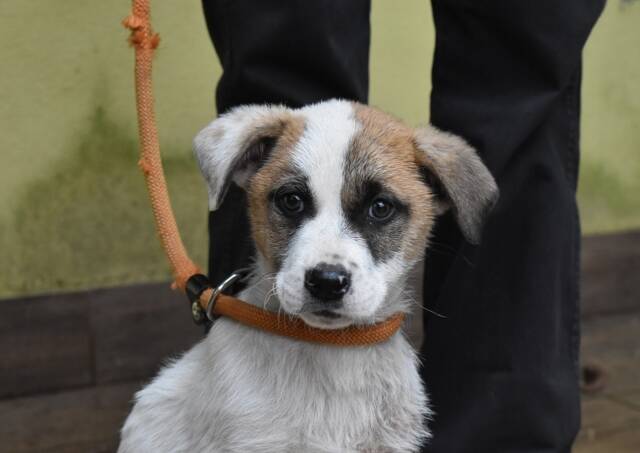 Sie fühlen sich geblendet? – Nein, liebe Leser, dieses Licht kommt nicht von seinem hellen Fell. Es kommt von ihm, tief aus seinem kleinen Welpenherz. Elenio ist noch so klein, vermutlich denkt er, das hier ist sicher nur ein Zwischenstopp. Ein verdammt blöder. – Im Grunde hat er da recht, zumindest wäre es nicht ganz so schlimm, wenn die Hunde nur kurzzeitig dort bleiben würden. Doch manche bleiben so lang, dass ihre kleine Flamme der Hoffnung von der Angst ausgepustet wird. Und manches Vertrauen. So wird es auch bei Elenio sein. Er ist noch nicht lange im Hundelager, er kam am 31. Januar mit seiner Schwester Eloria dort an. Leider hatte er auch eine Flohdermatitis, von der Kinn, Hals und Pfoten betroffen waren. Aber er erholt sich schon davon.