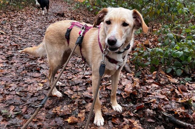 Bei Spaziergängen begegnet sie anderen Hunden neugierig und interessiert. Jogger, Radfahrer oder Reiter verunsichern sie nicht. Wildspuren im Wald findet sie allerdings besonders spannend. Hier braucht sie eine souveräne Führung, den weiteren Aufbau eines sicheren Rückrufs sowie regelmäßige Aufmerksamkeitsübungen.