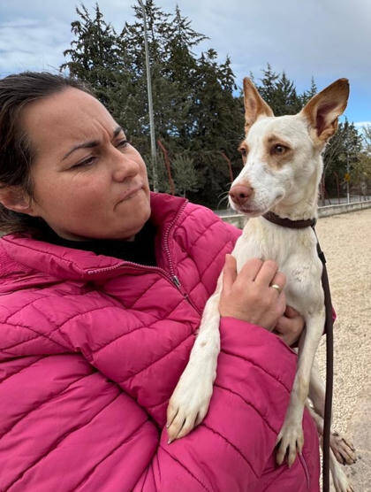 Nachdem isoliertem Leben im Zwinger ist die Hündin nicht sehr zutraulich Menschen gegenüber, aber ihre jetzige Betreuerin hat und nimmt sich die Zeit sie nach und nach zu sozialisieren. An das Zusammenleben mit Artgenossen ist Mía1 gewöhnt und ist verträglich mit ihnen. Sie könnte also daher in ein Zuhause mit weiteren Hunden vermittelt werden. Die Leine konnte die Hündin nun bereits kennenlernen, das Hundeeinmaleins wird ihr allerdings noch fremd sein, aber mit der richtigen Unterstützung wird sie dieses bestimmt lernen können.
