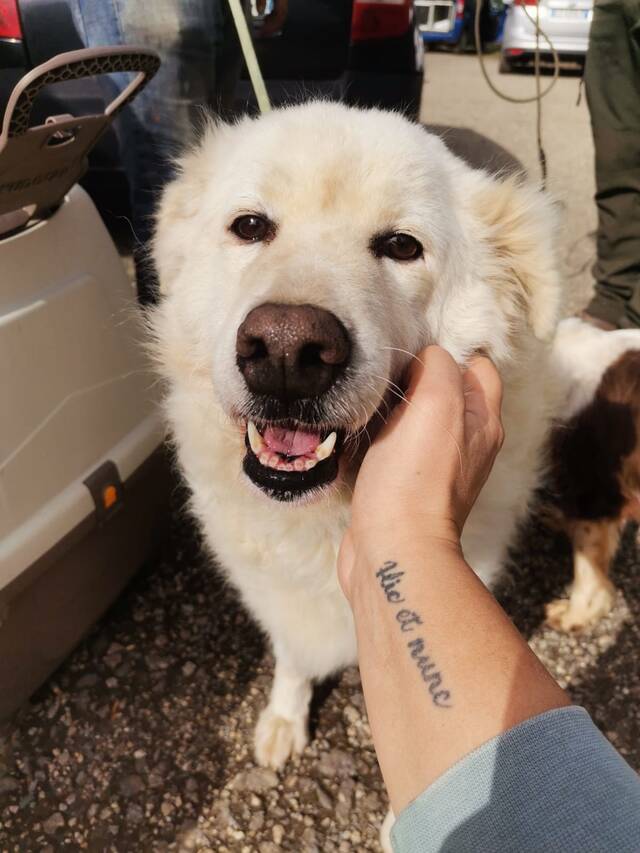 Beschreibung: Chicco kam im Alter von zehn Monaten ins Canile. Beton, Gitterstäbe und ohrenbetäubendes Gebell umfingen das schneeweiße Hundekind für mehr als sechs Jahre seines Lebens, bis………….. …….bis für Chicco und seine Schicksalsgefährten selbst diese karge Lebenswirklichkeit auf dem Spiel stand. Wegen bevorstehender Schließung des Caniles, sollte Chicco verlegt/deportiert werden, in eines der riesigen, lebensfeindlichen Hundelager, aus denen kein Weg mehr herausführt. Chicco konnte davor bewahrt werden, zu einem Unsichtbaren,- einem an Leib und Leben bedrohten Insassen einer ‚Vorhölle‘ zu werden. Chicco fand ein betreutes Interimsobdach in einer, von italienischen Tierschützern geführten Pension und erfährt dort zum ersten Mal angemessene Bekümmerung, Zuwendung und artgerechte Pflege. Für Chiccos lebensrettende Unterbringungsmaßnahme benötigen wir denn auch dringend Spenden, die seinen Pensionsplatz sicherzustellen helfen bis er,- hoffentlich ganz bald -, umziehen kann, in ein wirkliches Zuhause,- zu SEINER Familie.