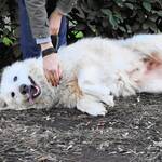 Und damit wären wir wieder an der Stelle angelangt, an der ich Ihnen gerne erklären möchte, warum Hadriano für mich so viel mehr ist als nur einer unter vielen: Dieser wunderschöne, zugegebenermaßen aktuell mangels Pflege etwas zerzauselte, Prachtkerl hält das alles nicht nur seit mehr als 4 ½ Jahren (Stand Mai 2025) aus, sondern konnte sich dabei sogar sein liebenswertes Wesen bewahren. Die schlechten Jahre haben ihn (bisher) nicht kleingekriegt! Der süße Schlumpf ist zwar anfangs etwas schüchtern, aber sobald er die Gelegenheit bekommt, den Zweibeiner an seiner Seite als „vertrauenswürdig“ einzustufen, ist er ein durchweg anhänglicher, freundlicher und liebevoller Hund, der obendrein auf dem Rücken liegend sein „Grinsekatzen-Gesicht“ präsentiert!