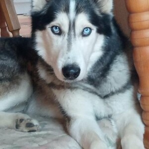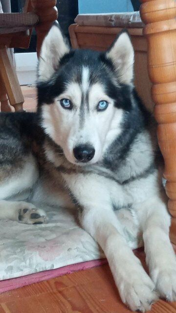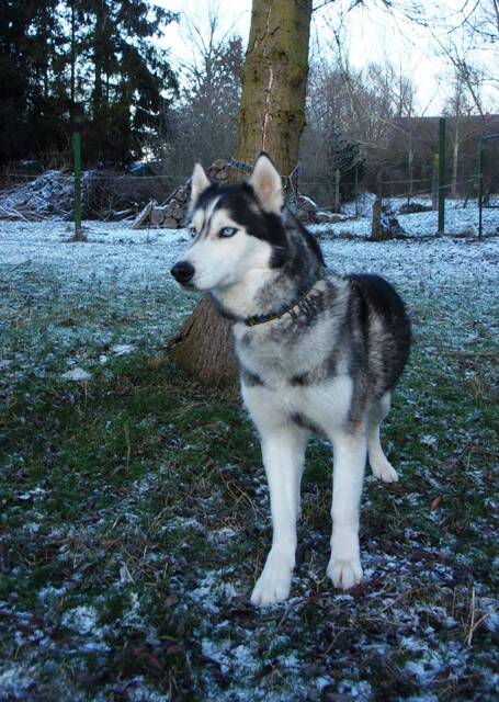 Die Schönheit mit den blauen Augen liebt ausgedehnte Spaziergänge und auch die Zugarbeit vor dem Fahrrad kennt er, wobei das Training hier moderat sein sollte, Florentin hatte eines seiner Vorderbeine einmal gebrochen, der Bruch wurde aber operiert und ist ausgeheilt, er hat keine Beeinträchtigungen dadurch in der normalen Bewegung, beim Hundesport sollte man aber etwas dosierter mit ihm arbeiten.