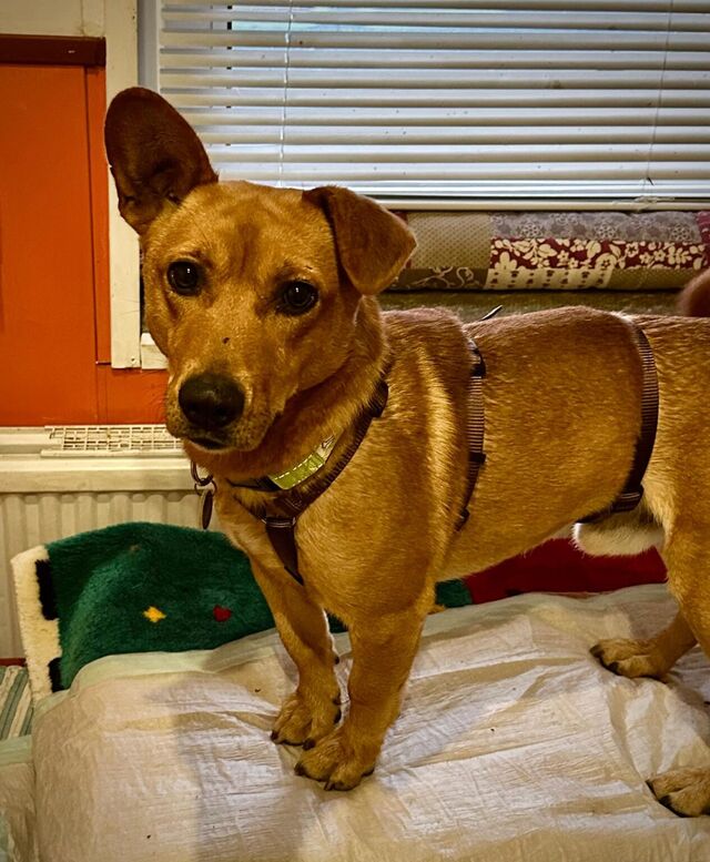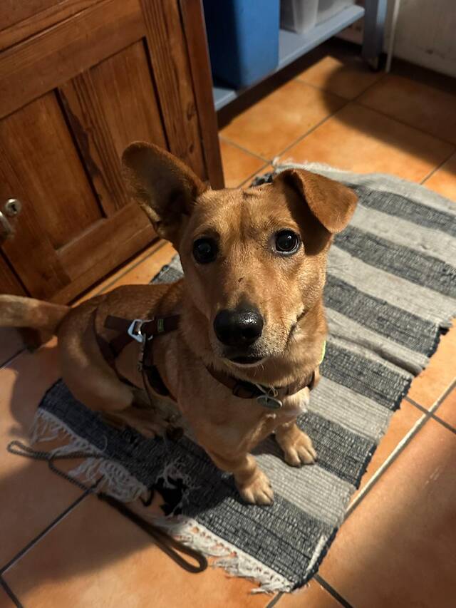 Pucki ist ein sportlicher Dackelmix mit viel Lebensfreude und einem Herzen so groß wie seine Ohren.