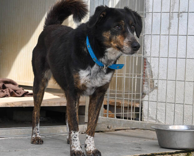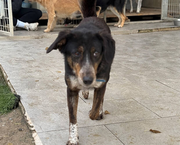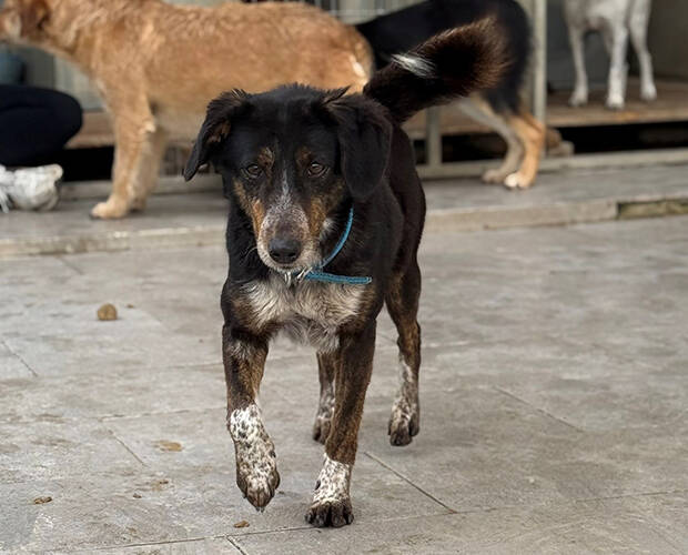 Nela ist ca. 8 Jahre alt, aber wer nun an eine gemütliche Seniorin denkt, irrt gewaltig. Die hübsche Jagdhund-Mix-Dame ist agil, unerschrocken und hat Power. Sie ist ein echter Springinsfeld – 1,50 Meter aus dem Stand sind für sie kein Hindernis. Trotz ihrer Vergangenheit hat Nela sich ein liebes, aber sehr eigenständiges Wesen bewahrt. Sie ist keine Hündin, die sofort auf den Schoß springt, aber sie lernt jeden Tag mehr, Berührungen zu genießen.