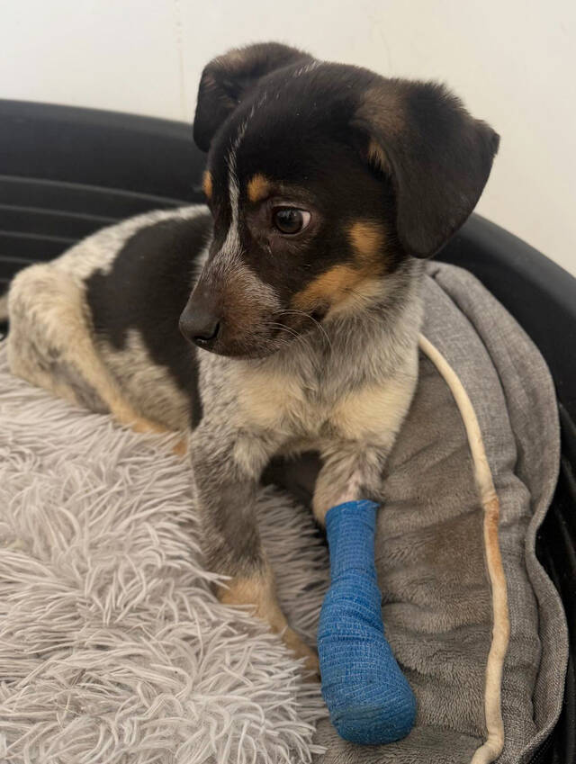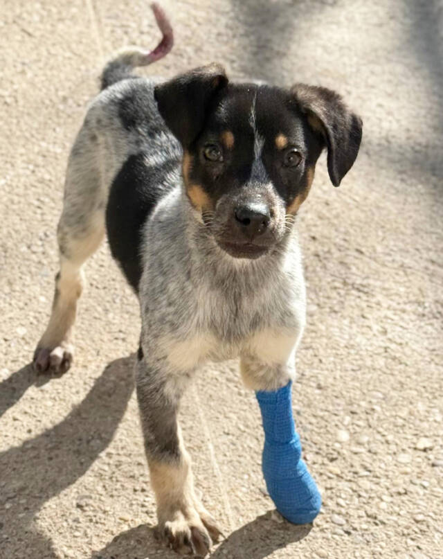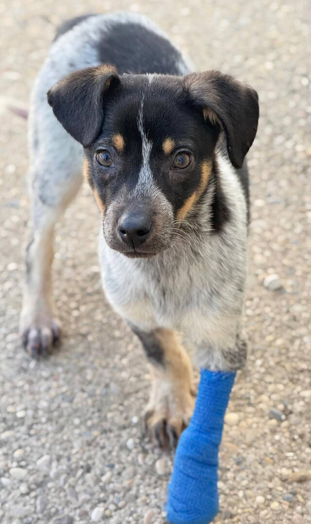 Kurz nach ihrer Ankunft erkrankten die Welpen schwer an Parvovirose und mussten intensiv medizinisch behandelt werden, aber alle drei haben tapfer gekämpft und zum Glück überlebt. Hoppy erlitt zusätzlich eine schwere Infektion und verlor dadurch einige Zehen an der Vorderpfote. Er ist noch nicht wieder ganz fit, aber es geht ihm immer besser. Unser Tierarzt sagt, er wird ein ganz normales, glückliches Hundeleben führen können.