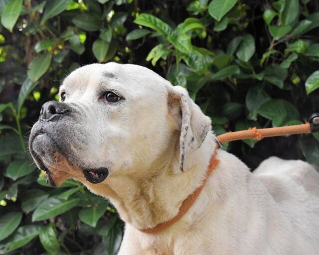 Dollaros Bulldoggen-typische Schnauze gibt ihm einen etwas seriösen Gesichtsausdruck, aber das ist eine optische Täuschung. Er scheint nämlich eine Kombination aus Energiebündel und Schmusebacke zu sein. Alles, was er und alle seine Mitgefangenen möchten, ist einfach nur als vollwertiges Familienmitglied geliebt und respektiert zu werden. Der Rest, wie etwa Kuscheleinheiten, Leckerlies, vielleicht der Besuch einer Hundeschule, schöne Spaziergänge durch die Natur, zusammen spielen und toben, gehört selbstverständlich dazu, wenn ein Hund geliebt und respektiert wird.
